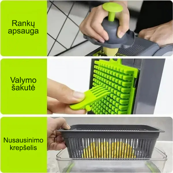 🔪 Tiksliai pjausto, pjausto griežinėliais ir tarkuoja