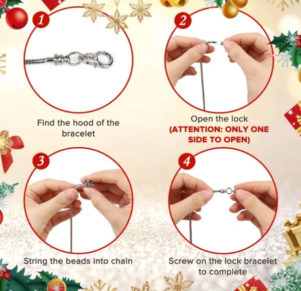 - Kalėdinis advento kalendorius su 22 pakabukais ir 2 apyrankėmis, iš kurių galima sukurti dvi žavingas apyrankes.