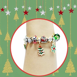 - Visi žavūs pakabukai turi žavingą kalėdinę temą, įskaitant Kalėdų Senelį, eglutę, Kalėdų Senelio kepurę, dovanų dėžutę, kojinę, snaigę, vainiką, cukranendrę ir kt.