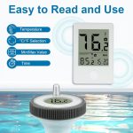Plūduriuojantis jutiklis kiekvieną sekundę perduoda naują rodmenį 60 m belaidžiu atstumu – jokios programėlės, jokio WiFi, jokios sąrankos, išskyrus AAA baterijų įdėjimą į abu įrenginius. IP67 įvertintas jutiklis nuolat plūduriuoja vandenyje per lietų, saulę ir žiemą, o vidinis LCD imtuvas rodo esamą vandens temperatūrą ir laiką viename aiškiame ekrane.
