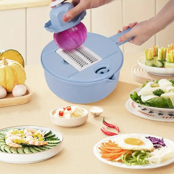 Nuo kiaušinių atskyrimo iki daržovių pjaustymo, 12 viename dizainas susidoroja su beveik bet kokiu maisto ruošimo iššūkiu. Galima įsigyti stilingų mėlynos ir rožinės spalvų, kad atitiktų jūsų virtuvės dekorą.