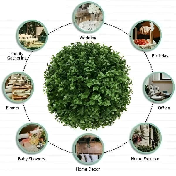 Pamirškite kasdienės augalų priežiūros rūpesčius! Šie dirbtinių augalų rutuliai sukurti taip, kad atrodytų stulbinamai bet kokioje aplinkoje – tiek viduje, tiek lauke. Mėgaukitės gyvybinga žaluma ištisus metus, nesijaudindami dėl nuvytimo ar išdžiūvimo. Šie dekoratyviniai augalų kamuoliai puikiai tinka sodui, kiemui, svetainei ar biurui, nes nereikalauja jokių pastangų, kad bet kokia aplinka taptų puošnesnė!