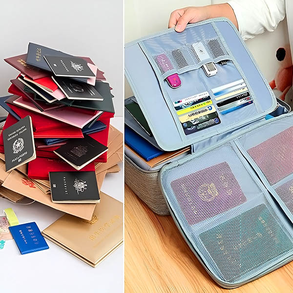 Naudokite krepšį pasams, kelionių maršrutams ir viešbučių patvirtinimams saugoti, kad galėtumėte keliauti be rūpesčių.
