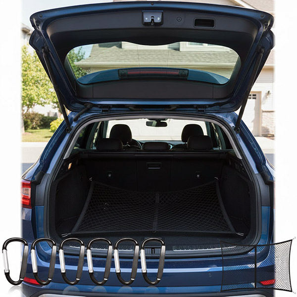 NETLASTIK tvirtai laiko krepšius, pirkinius, sporto įrangą, lagaminus ar palaidus daiktus bet kokio važiavimo metu. Jokio krovinių slankiojimo, riedančių butelių ar netikėtos netvarkos — tik saugus ir stabilus transportavimas bet kurio standartinio automobilio bagažinėje.