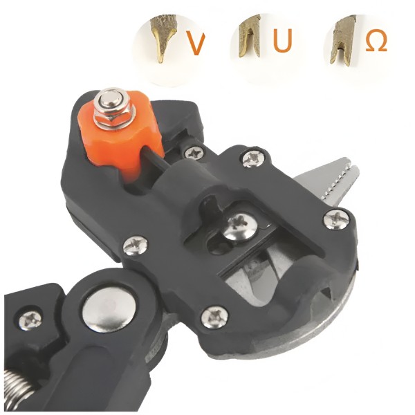 Šis įrankis turi 3 keičiamus ašmenis (V, U, Ω), leidžiančius atlikti skirtingus pjūvius, todėl jis puikiai tinka įvairioms genėjimo ir skiepijimo užduotims.