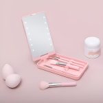 Šepetėlių rinkinys ir LED veidrodėlis puikiai telpa į rankinę, todėl makiažą galėsite lengvai pasidaryti, kad ir kur jus nuvestų diena.