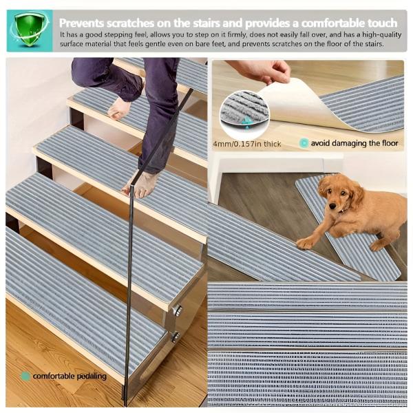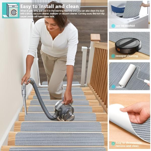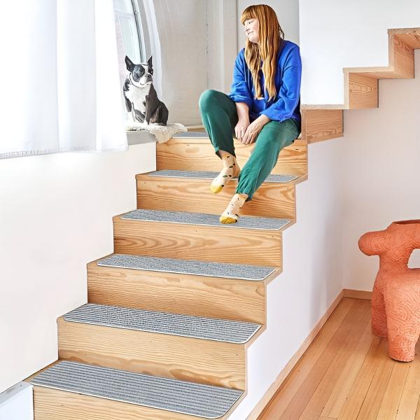 Mūsų laiptų pakopų kilimėliai su neslystančiu pagrindu saugiai laikosi savo vietoje, apsaugodamos nuo paslydimo ir kritimo.