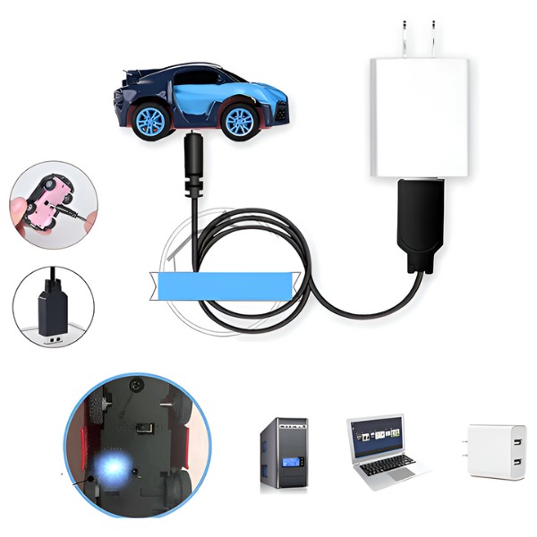 Nebereikia rūpintis baterijų keitimu. Tiesiog įkraukite ZOOMZI automobilį nešiojamuoju kompiuteriu, automobiliu arba maitinimo banku. Visiškai įkrauti užtrunka tik 30 minučių, todėl galėsite žaisti iki pusės paros – tai puikiai tinka užimtoms dienoms!