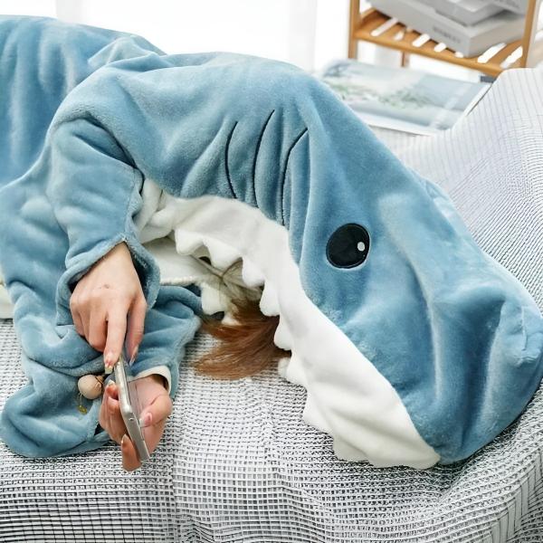 🦈 Pasinerkite į komfortą su ryklio antklode – iš dalies antklodė, iš dalies miegmaišis, iš dalies ryklys!