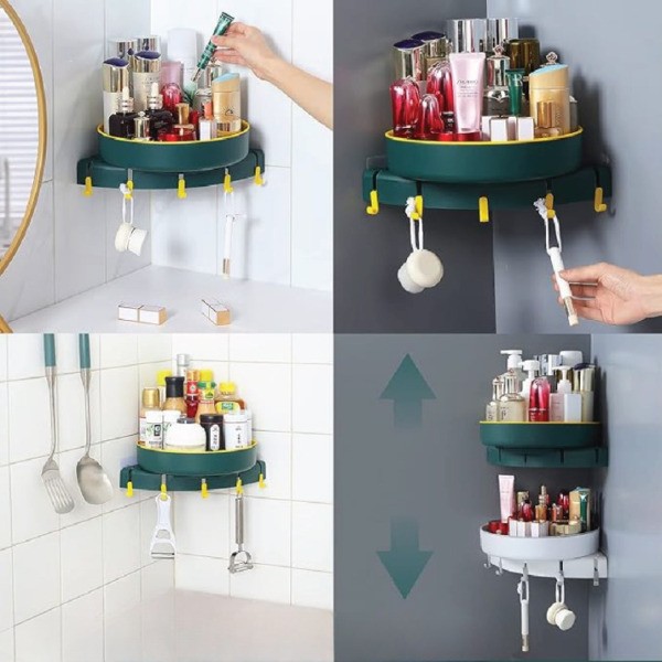 Kampinis besisukantis organizatorius leidžia maksimaliai išnaudoti nenaudojamą kampo erdvę, o daiktus laikyti tvarkingai sudėliotus ir pasiekiamus.