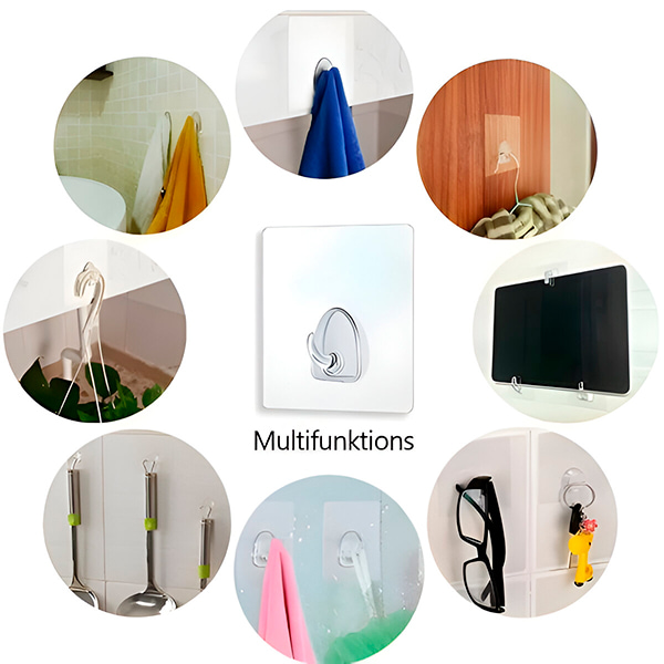 Skirtingai nuo pigių kabliukų, kurie slysta ar nukrenta, STICKYHOOKS laiko iki 10 kg. Pakabinkite virtuvės reikmenis, rankšluosčius, raktus ar net gėlių vazonus.