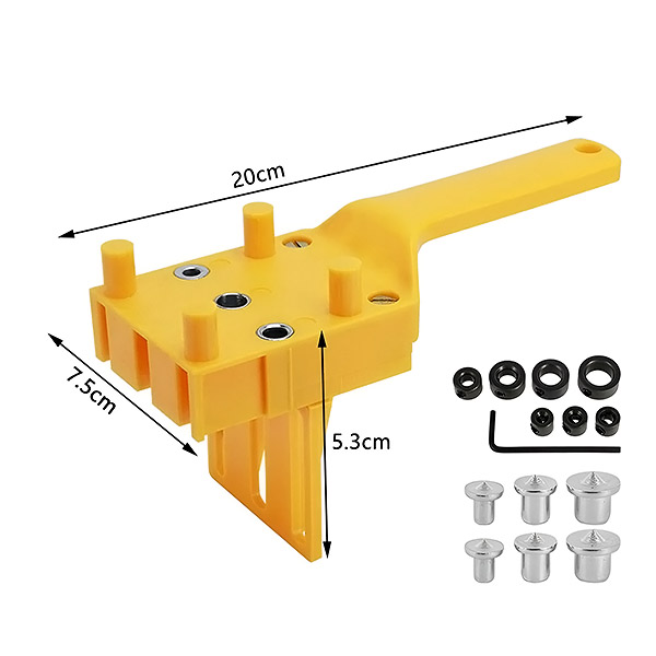 Šis prietaisas palaiko 6, 8 ir 10 mm kaiščius ir veikia iki 30 mm storio medienoje ir medžio drožlių plokštėse, todėl idealiai tinka įvairiems projektams – nuo spintų iki baldų surinkimo. Dėl lengvos ir patogios konstrukcijos jį lengva valdyti, nesvarbu, ar dirbate prie statybų, ar staliaus darbų.